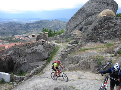 A primeira descida em trilho mais técnica foi brutal, pois aquilo não era sequer um caminho e acabava com umas rochas e um drop. Muito porreiro…